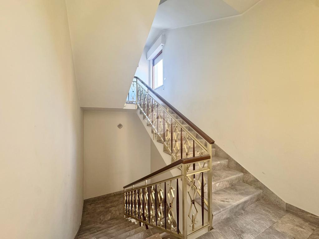 L'appartamento si sviluppa al primo piano con una metratura di ca 190 mq. Entrando, si è accolti da un ingresso che conduce a un luminoso soggiorno e a una sala da pranzo con cucinotto annesso. Da qui si accede a un balcone che offre uno spazio esterno piacevole. L'appartamento dispone di quattro camere da letto, tre delle quali vantano un balcone privato, garantendo così una buona illuminazione naturale e una ventilazione ottimale. Completano la proprietà due bagni finestrati, fornendo comfort e praticità per una famiglia numerosa.